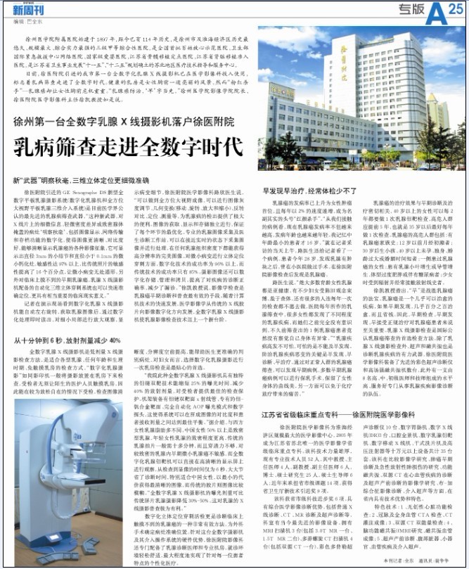 新周刊:徐州第一台全数字乳腺X线摄影机落户徐医附院