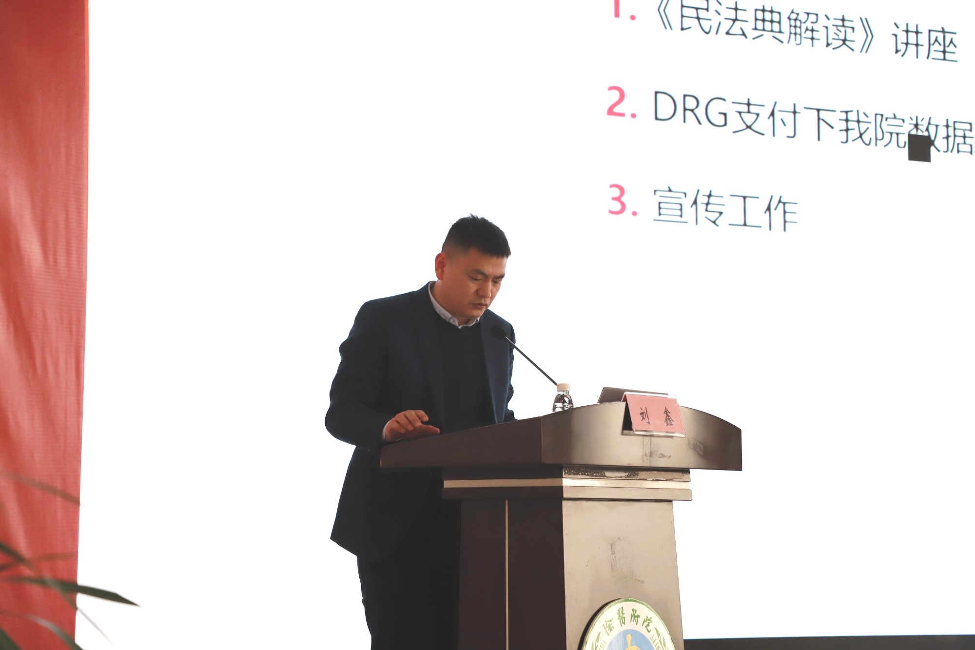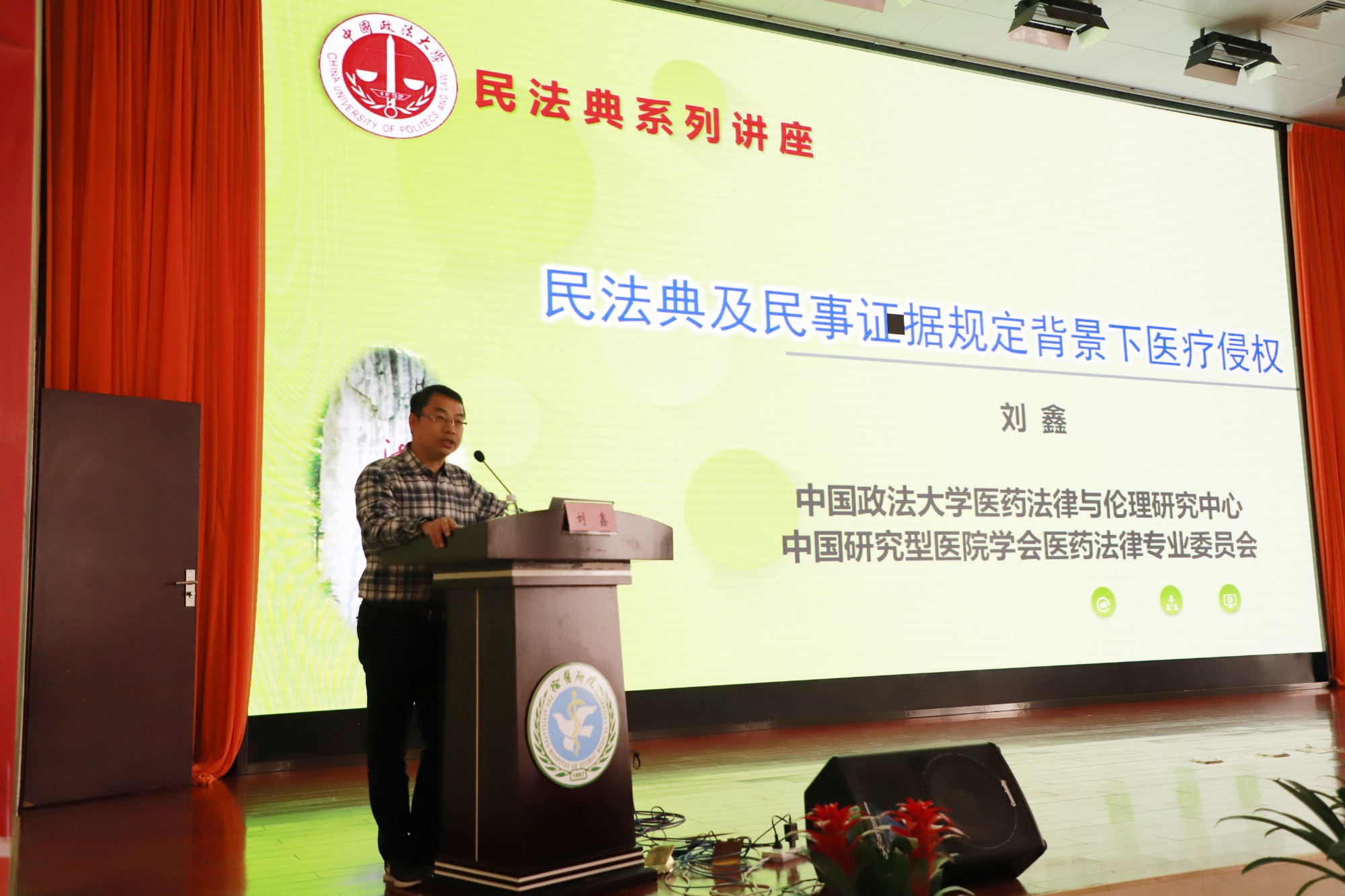 为了加强我院法治化建设工作,提高医院管理人员在医疗管理和服务过程中依法管理和服务的能力,11月5日下午,我院特邀中国政法大学证据科学研究院教授、硕士研究生导师、中国政法大学医药法律与伦理研究中心主任刘鑫来院开展了《“医者仁心”行医路上的情与法——“民法典及民事证据规定背景下医疗侵权”专题讲座》。院党委委员、纪委书记谈在祥主持讲座。院领导,全院临床、医技科室主任、医疗团队长、护士长,职能部门负责人等相关人员聆听了讲座。