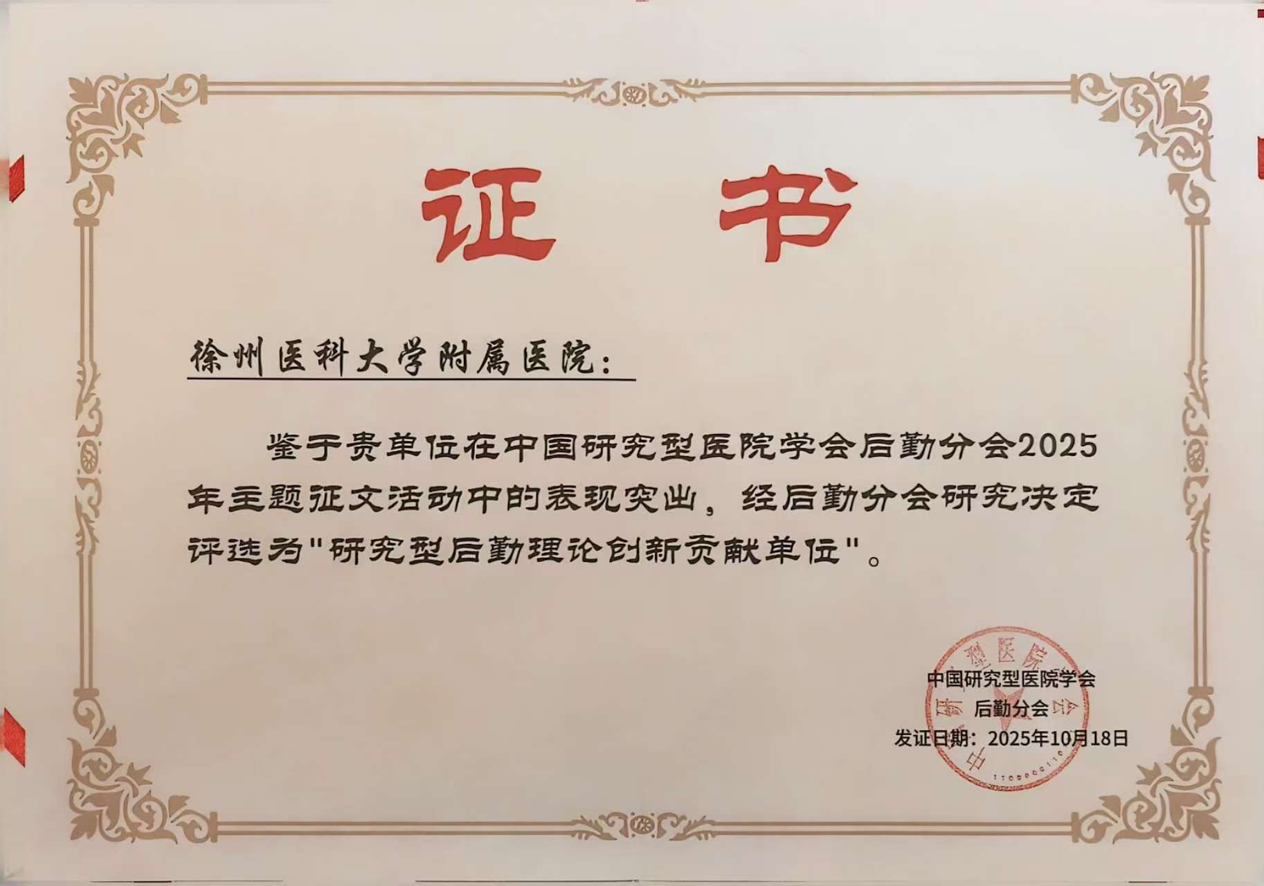 在上述两个会议上,我院后勤管理处积极组织处室人员积极投稿、参与会议发言,与国内知名医院同行进行了深入交流。分别获得2015-2025年度“研究型后勤理论探讨示范单位”,2025年度“研究型后勤理论创新贡献单位”“2025年全国医用气体管理先进医院”“2025年全国医用气体运维先进医院”等四项荣誉称号。后勤管理处组织投稿的4篇论文被评为优秀论文,14篇论文入选大会论文集。