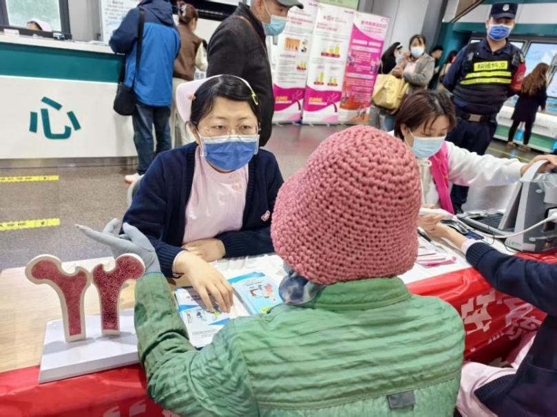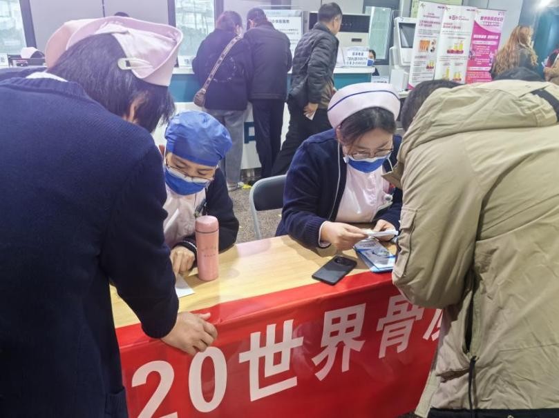 10月20日是“世界骨质疏松日”。为响应2025年世界骨质疏松日“健康体重 强骨健身”的主题号召,提升公众对骨骼健康的关注,普及骨质疏松防治知识,10月20日上午,我院骨质疏松科在淮海路院区门诊大厅举办主题健康科普活动。